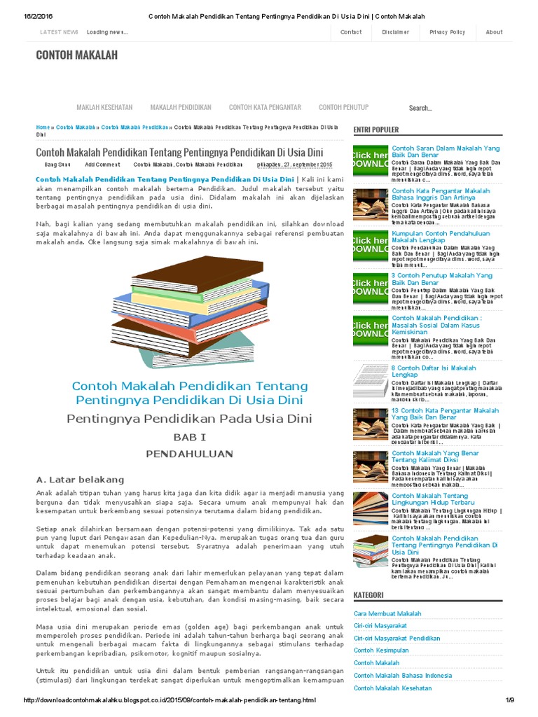 Contoh Makalah Pendidikan Anak Usia Dini - Terkait Pendidikan
